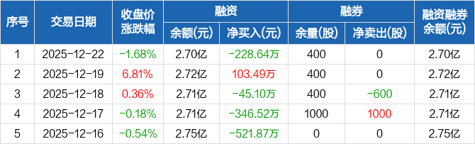 交运股份:融资净偿还228.64万元,融资余额2.7亿元(12-22)