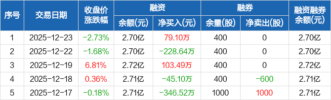 交运股份:融资净买入79.1万元,融资余额2.7亿元(12-23)