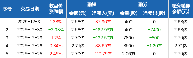 交运股份:融资净买入37.96万元,融资余额2.68亿元(12-31)