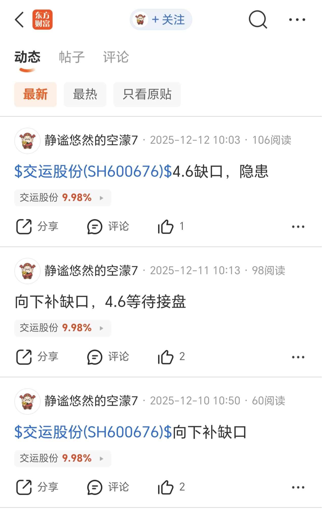 $交运股份(SH600676)$ 就想问问这兄弟今早炸板是奔着去补4..6的缺口吗