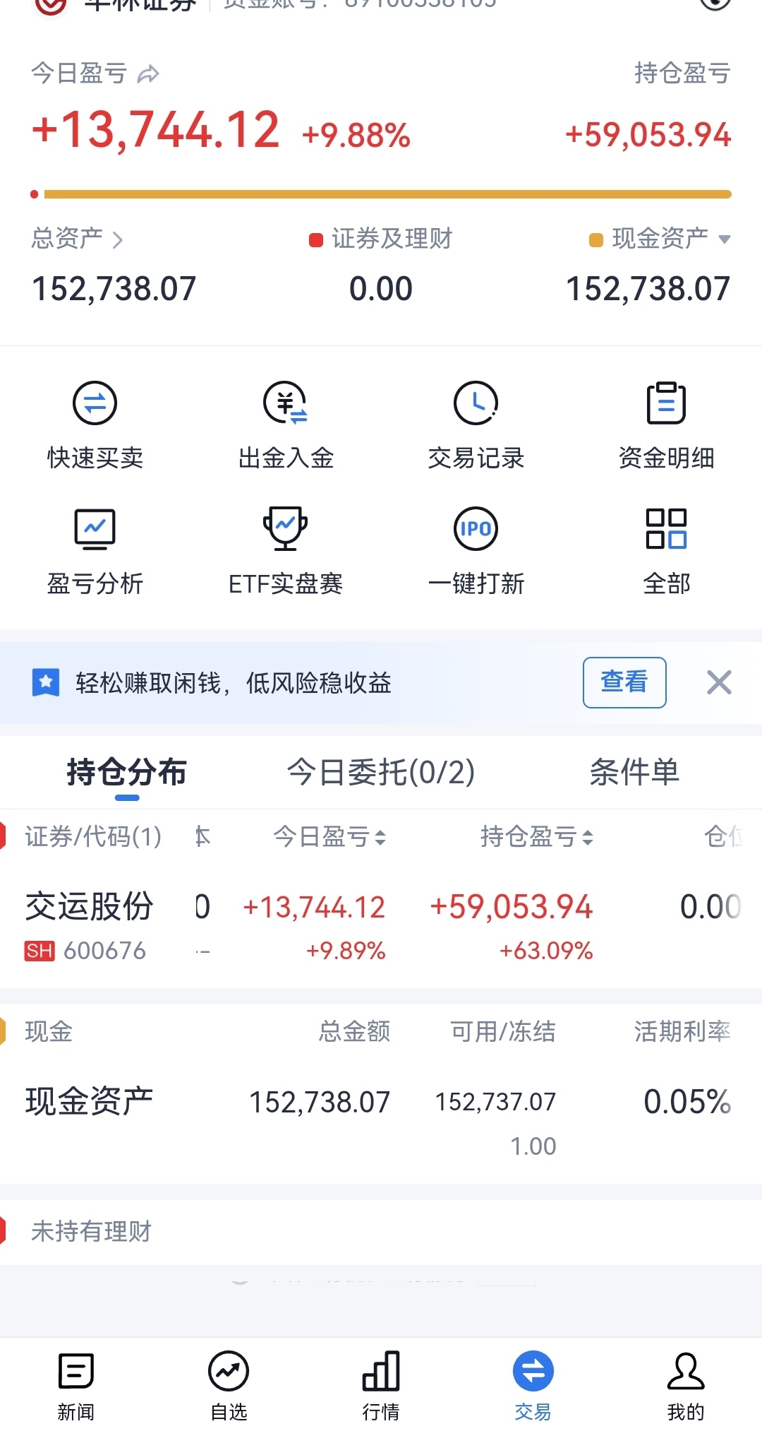 $交运股份(SH600676)$ 走了,吃了69多个点,有点舍不得