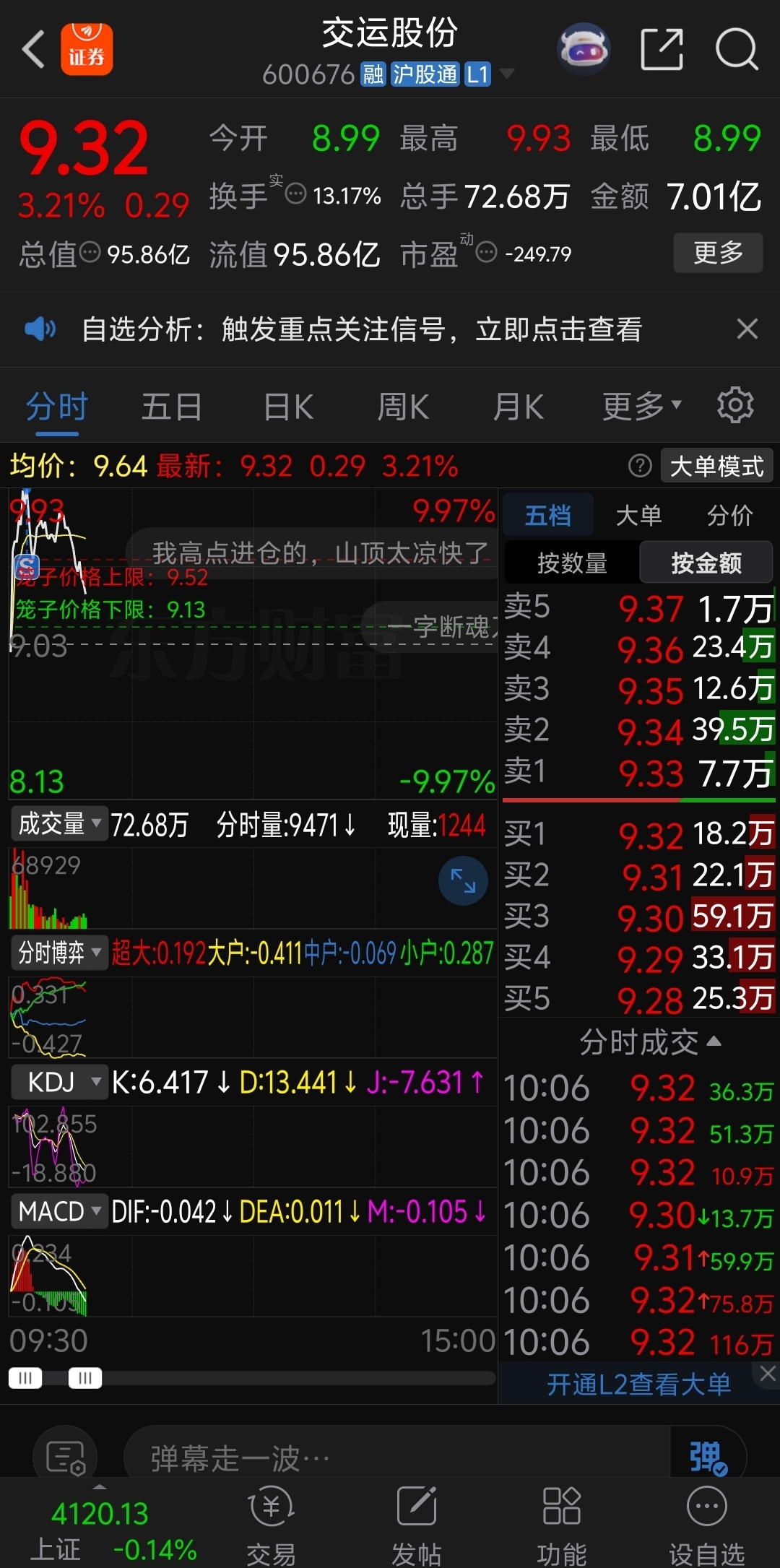 $交运股份(SH600676)$ 昨天做了个大T,相当于吃了5板,今天不敢了,祝留下的都发财。