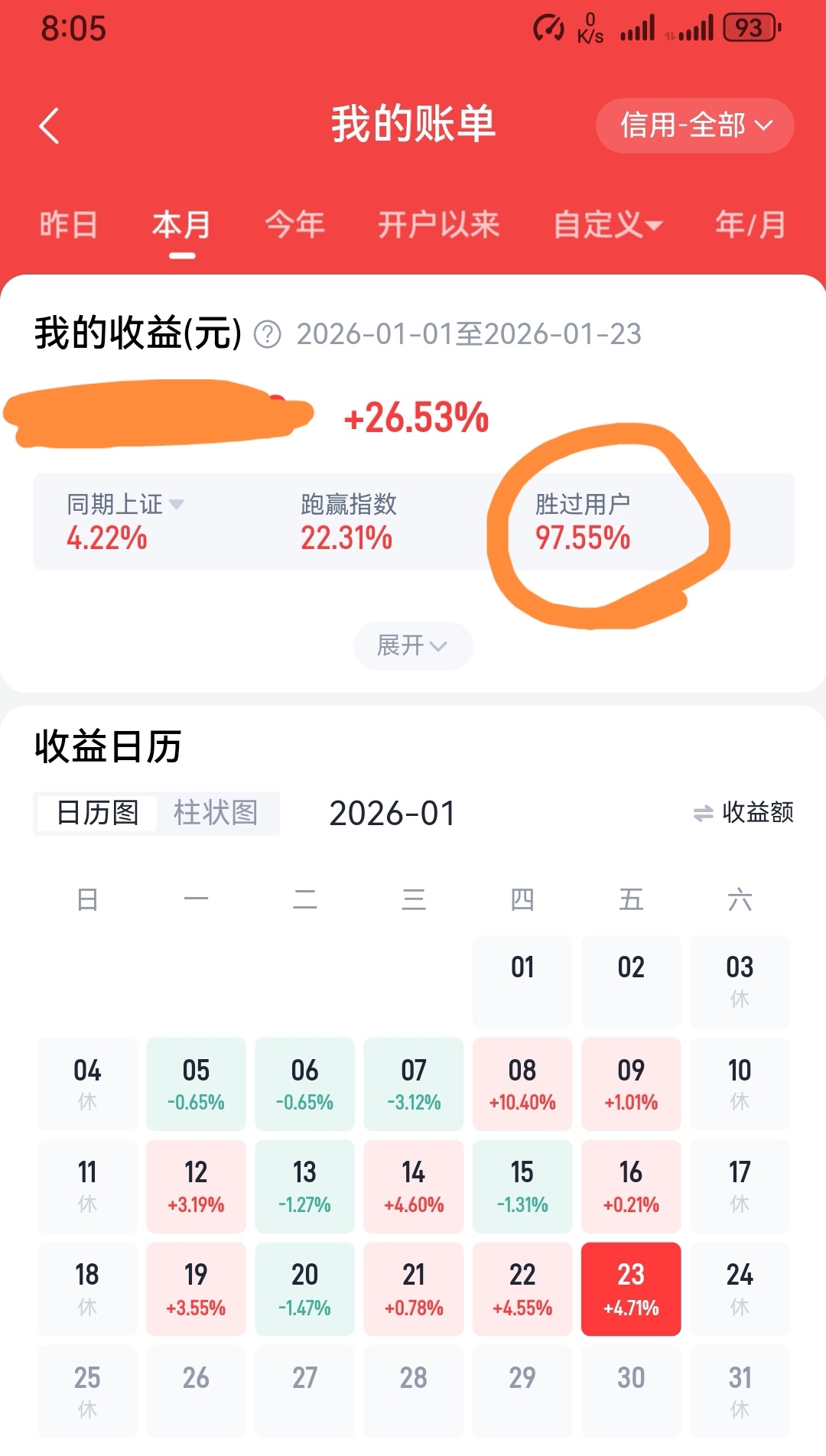 2026年1月前三周战绩,在没有一个涨停的情况下,还算是稳中有进,暂时盈利26.