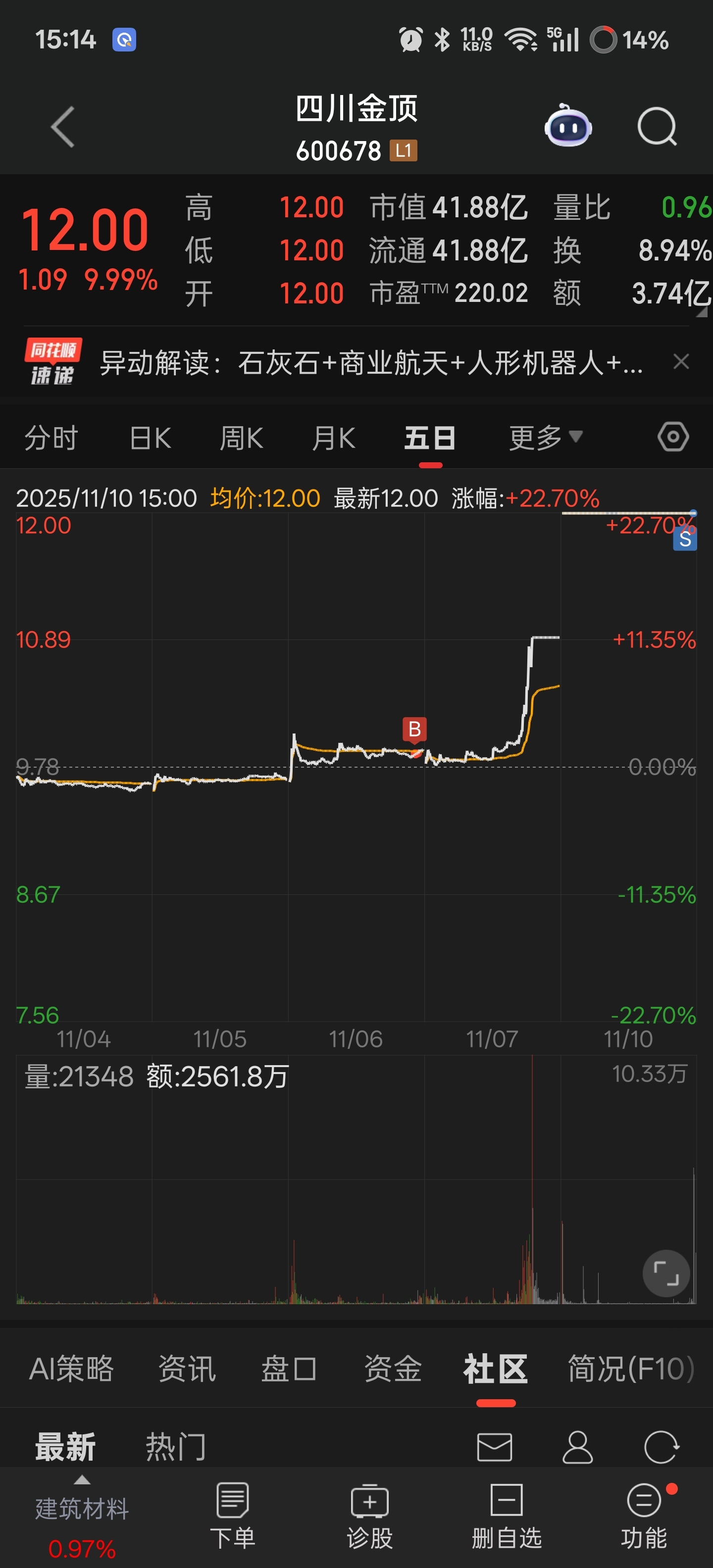 $四川金顶(SH600678)$ 人性就是这样,前两天嫌弃他是个水泥,现在辟谣了,韭菜硬要给头上扣太空算力的帽子