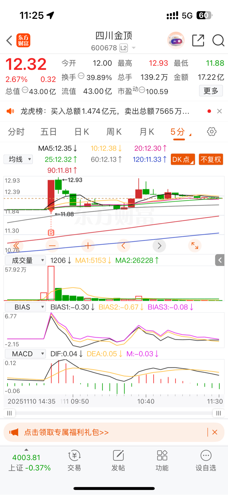 $四川金顶(SH600678)$ 随便折腾。稳如泰山