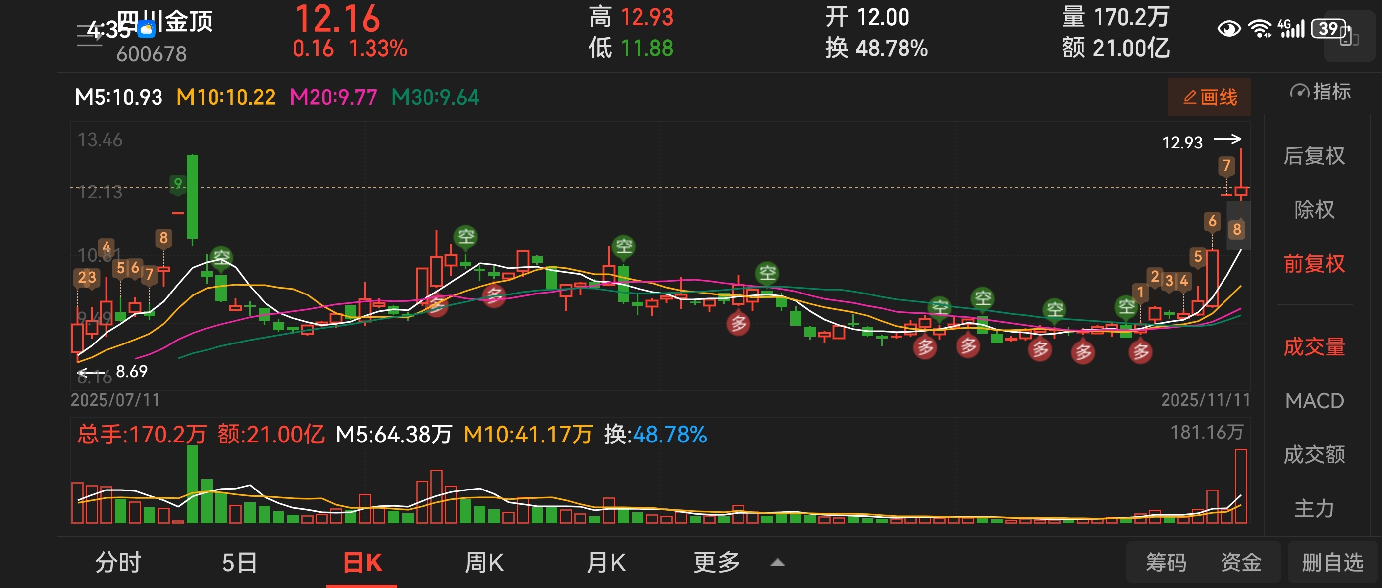 $四川金顶(SH600678)$ 明日分享,四川金顶!机会+低吸,看