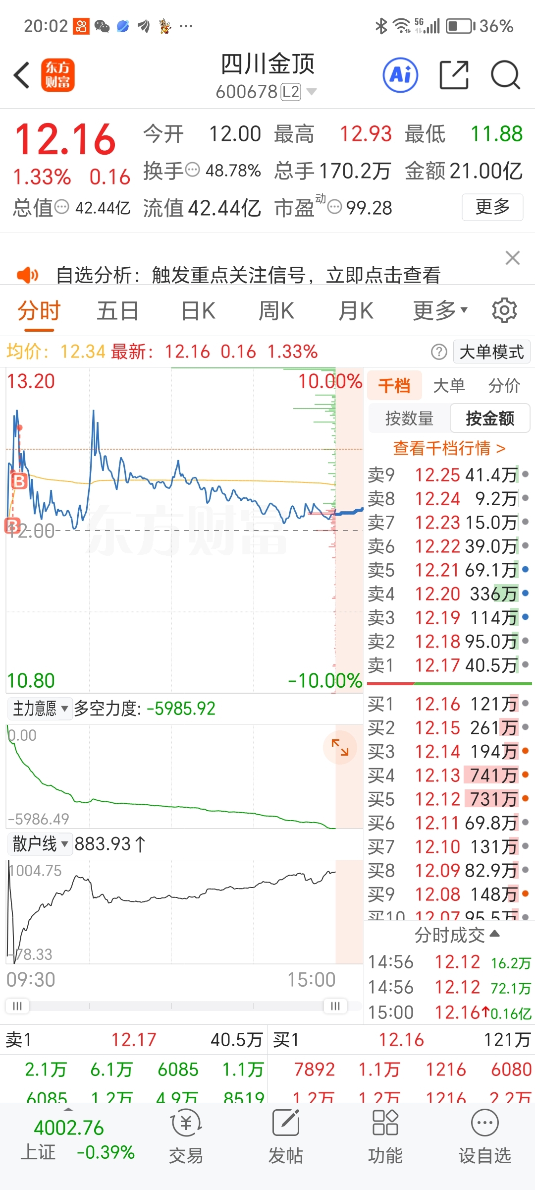 $四川金顶(SH600678)$ 每日一套,天天套在山顶,到底怎么买,来个大师指导一下