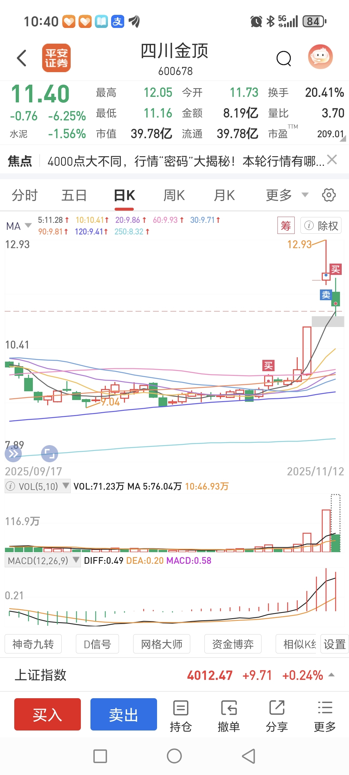 $四川金顶(SH600678)$ 别套我啊,我就进来看看,就放一点点!大家好好玩啊,我过几天就走,主力,我不影响你发财