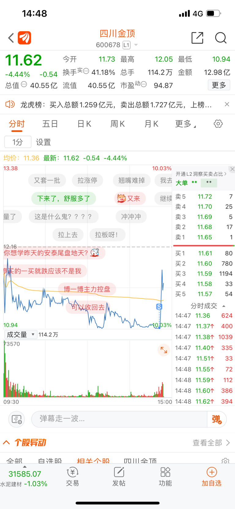$四川金顶(SH600678)$
