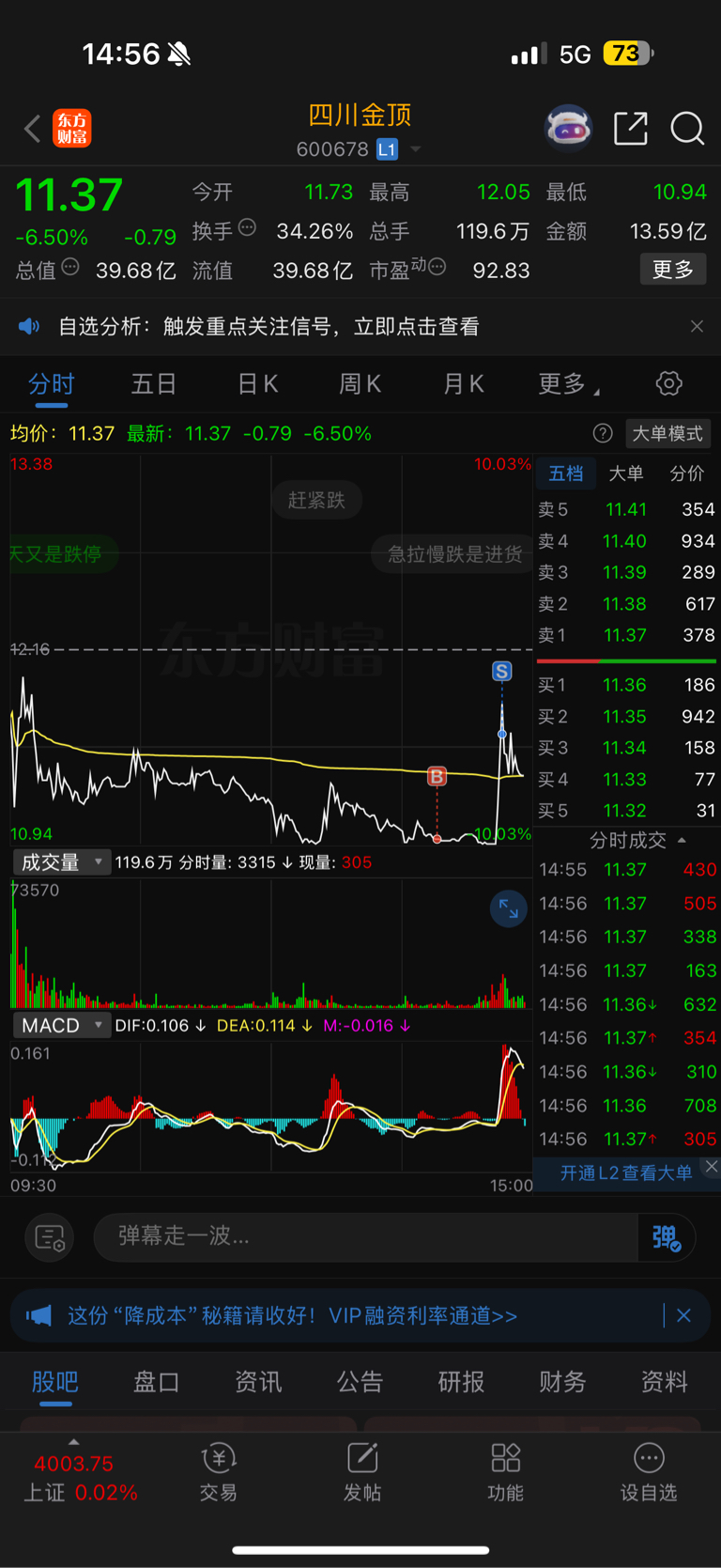 $四川金顶(SH600678)$ 这里股价停顿了3秒,手一抖卖早了