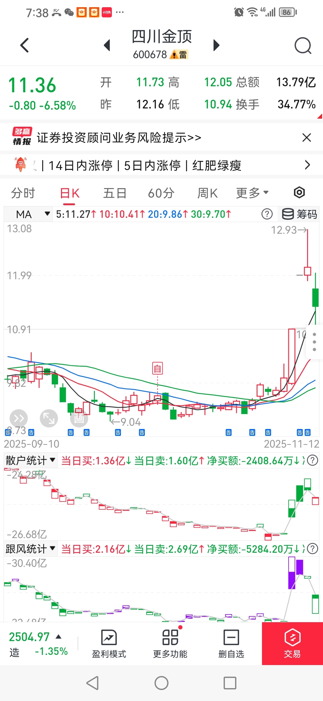 $四川金顶(SH600678)$ 经传多赢手机版数据123元年费,量化庄程序,大吃小(大碰小),碰多少吃多少,中单抛到托盘上才被动吃的呀。量化庄竞价接货是符合后台接货所有测评程序才接货的,现在中单机构过来后,量化庄已经不接货大单货了,因为中单机构能抛下去。