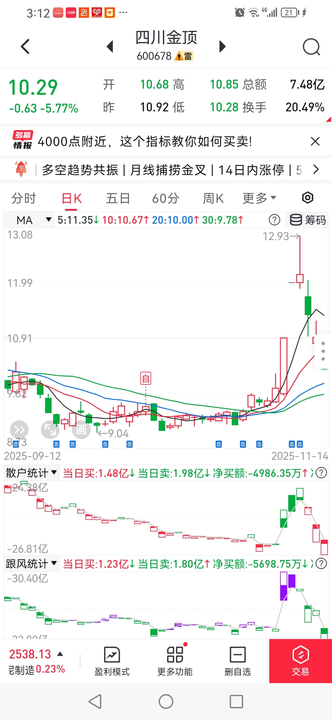 $四川金顶(SH600678)$ 经传多赢手机版数据123元,你这不会坐轿,你坐轿载,你跟买那量化也得看看这还有没有大单嘞啊?大单拉升就相当于游资拉升过程,想让那个控盘量化吃货,你得知道那量化对接哪些散户在抛货,被对接散户吃货,你才能拉升了啊?你把方向搞反了,这是T+1,咋跟买跟卖嘞?量化庄控盘和专用量化控盘,最好让他们俩都吃货,你懂不懂
