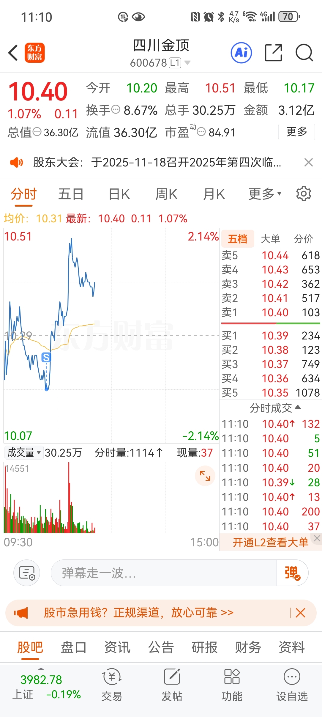 $四川金顶(SH600678)$ 只要我割肉就没有不涨的,我打板它地天,我追高它回落