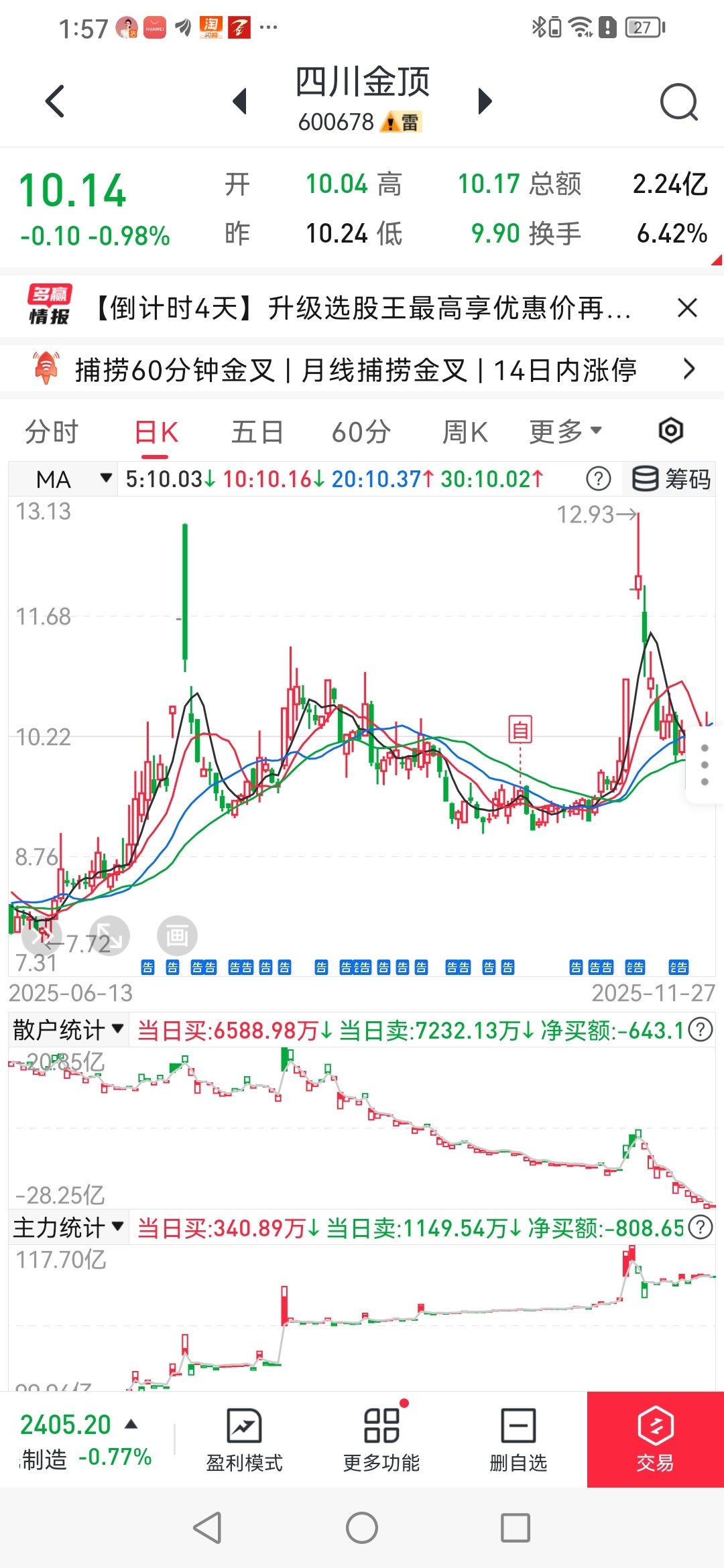 $四川金顶(SH600678)$ 经传多赢手机版数据短线王123元,散户不敢随便买,里面还有大单嘞,还有中单机构嘞,被对接散户主导行情,建仓不要动,因为你不能买,只能卖,一买就跌了