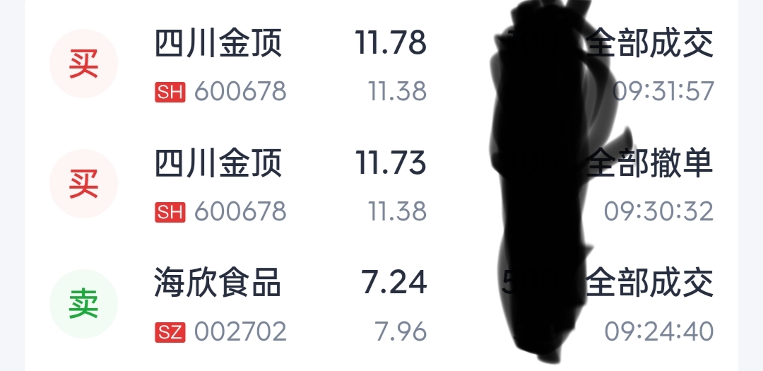 兄弟们早上集合竞价出了海欣食品,海欣涨停了然后买了1手金顶,结果就这样了,我该怎