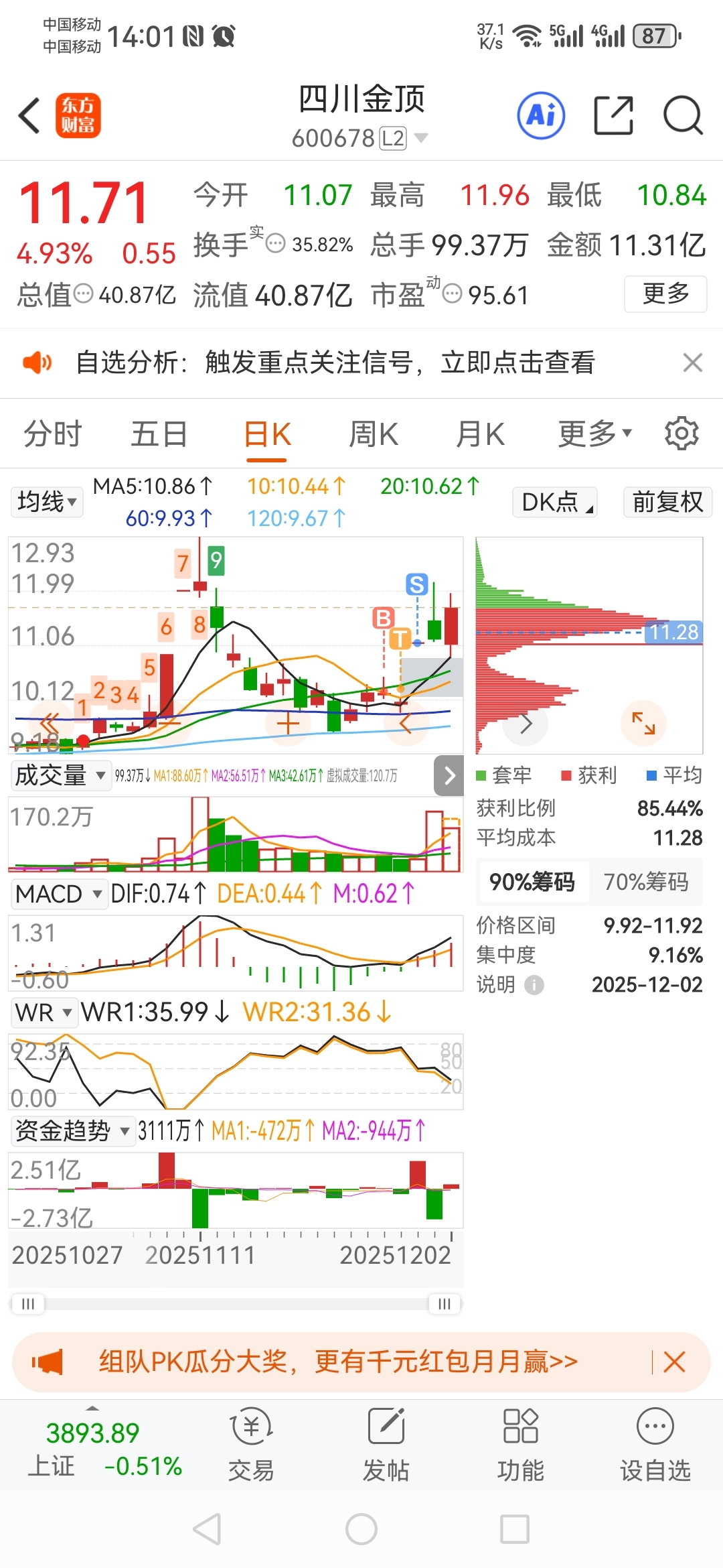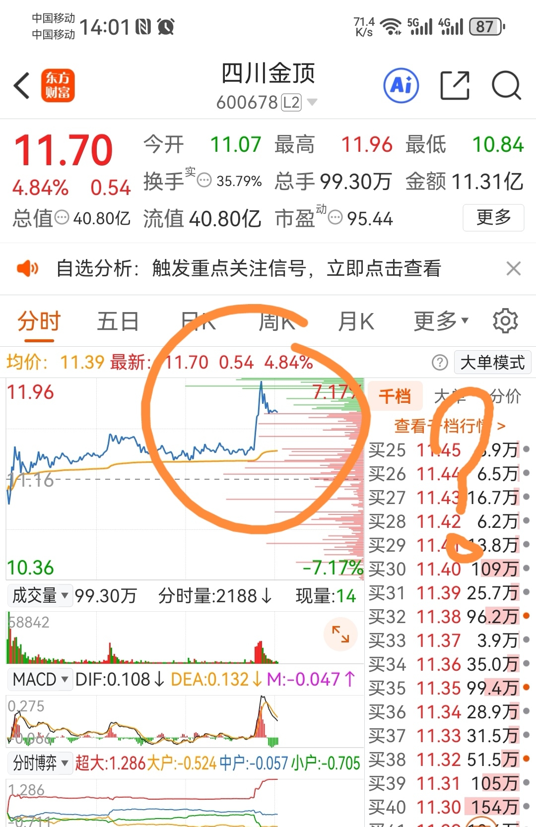 $四川金顶(SH600678)$ 追进去明天是死是活?