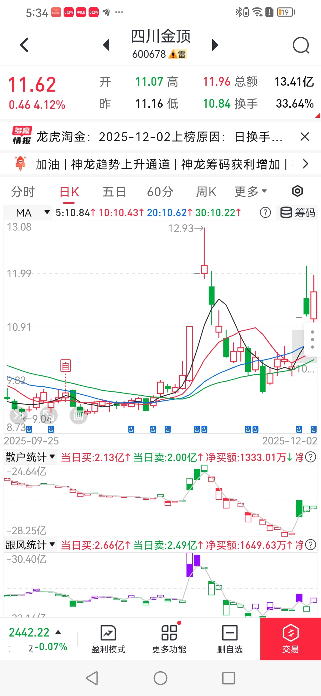 $四川金顶(SH600678)$ 经传多赢 手机版数据短线王123元,没法形容行情 ,究竟谁在控盘开盘价,大单在跟谁买货呢??大单赌被对接散户做顺T,结果那散户买了,不能抛货了啊??因为刚买货T+1卖不出去。那量化还必须站到高处,必须吃的多。