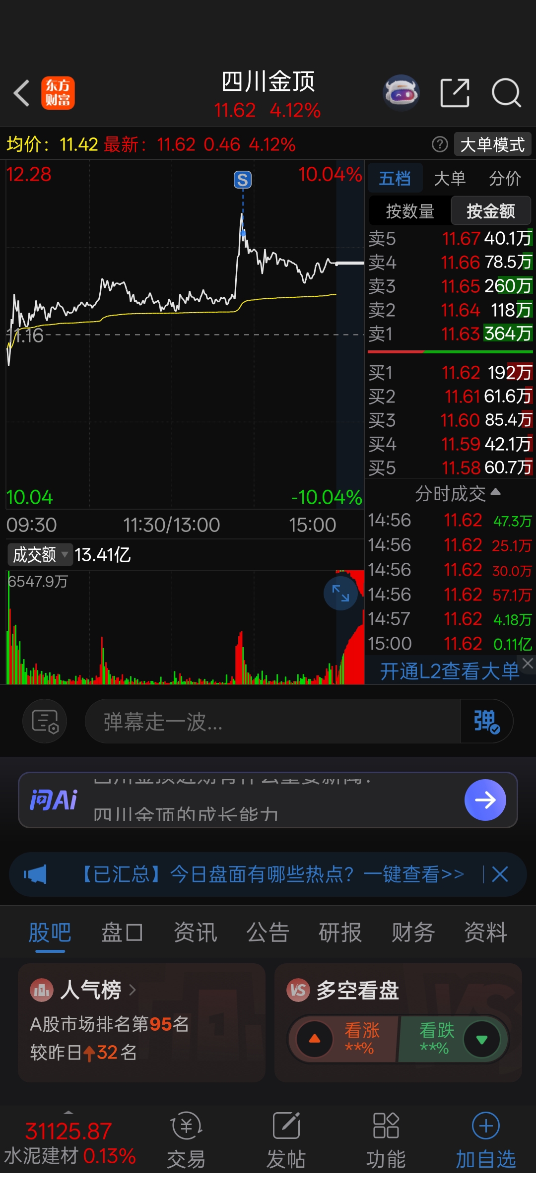 $四川金顶(SH600678)$ 感觉明天要涨停,有点后悔,走就走了,伤心