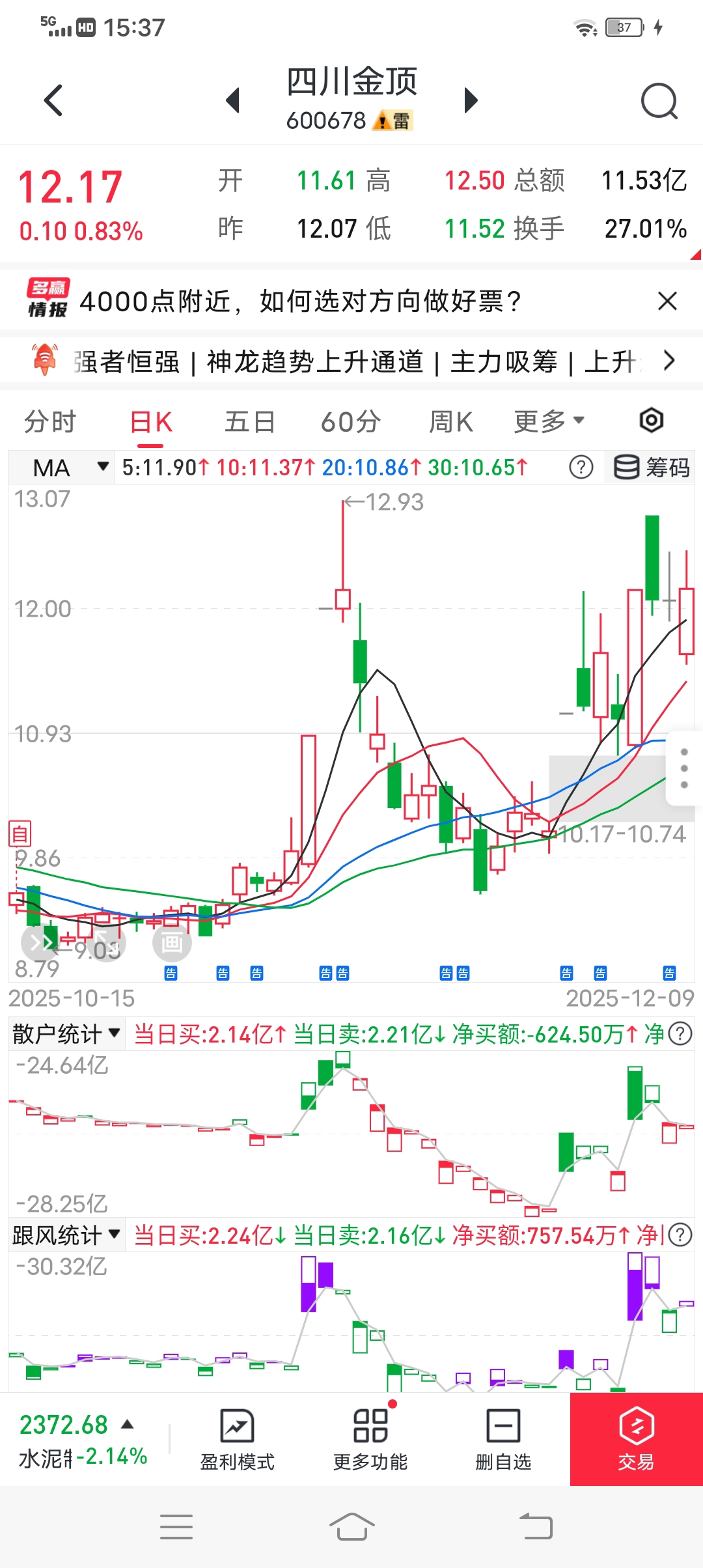 $四川金顶(SH600678)$ 拉升看盘,对接散户谁知道是顺T还是倒T,大单之间互相守望拉升,不守望得拉高。被对接散户没办法买货,买货就跌了。还得有暗庄量化庄概念大碰小,被对接散户大阳是可以跟买的,二次拉升有顺.T才能加仓