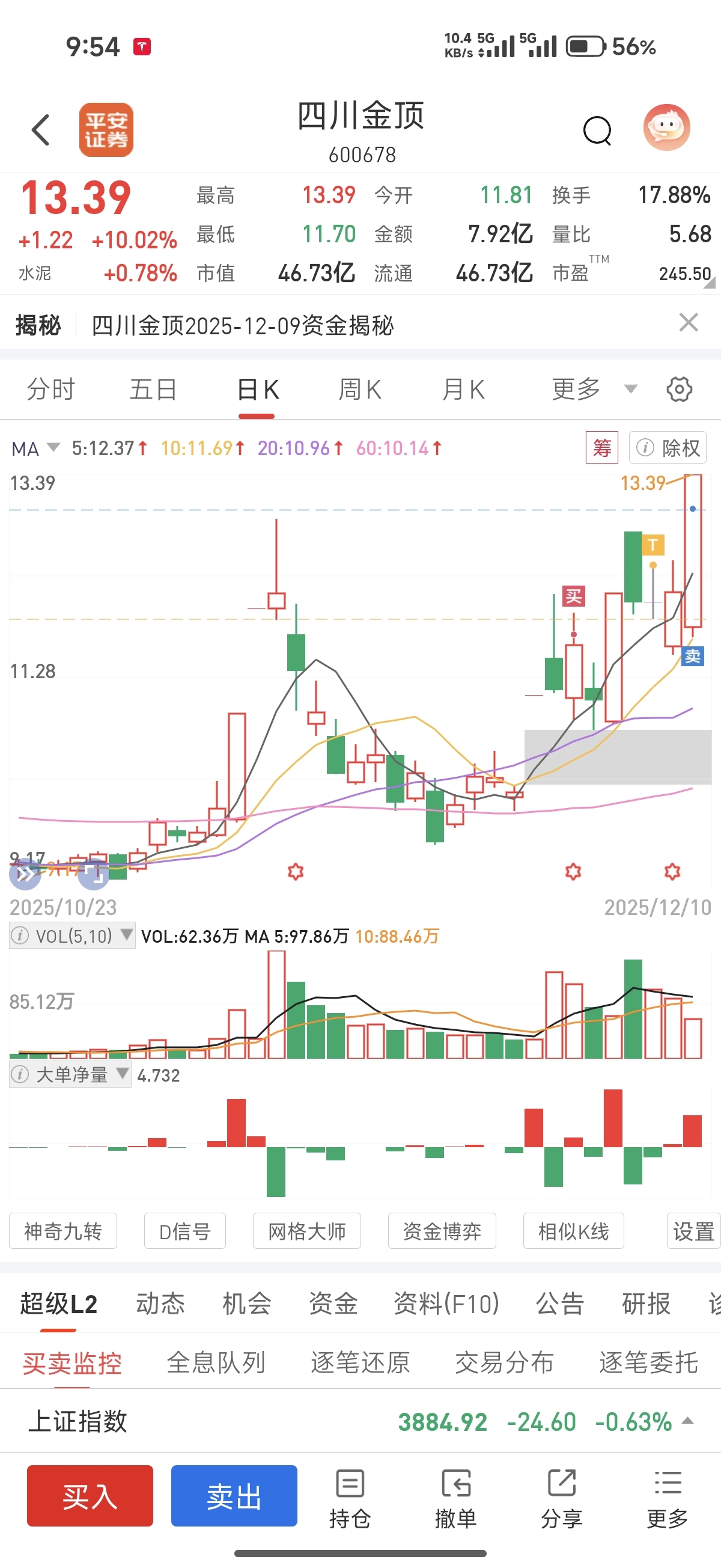 开始以为卖对了,一瞬间直接涨停。。吐血了