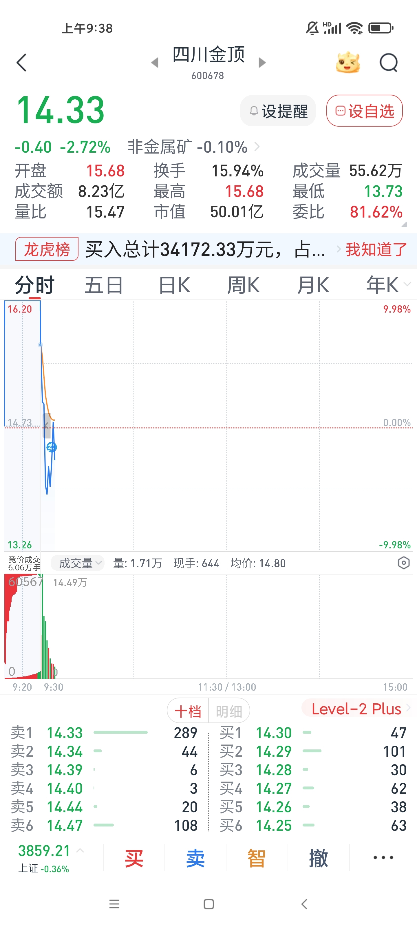 $四川金顶(SH600678)$ 已冲高卖出,还是应该昨天晚上-10卖反而可以卖最高价,不应该贪的。