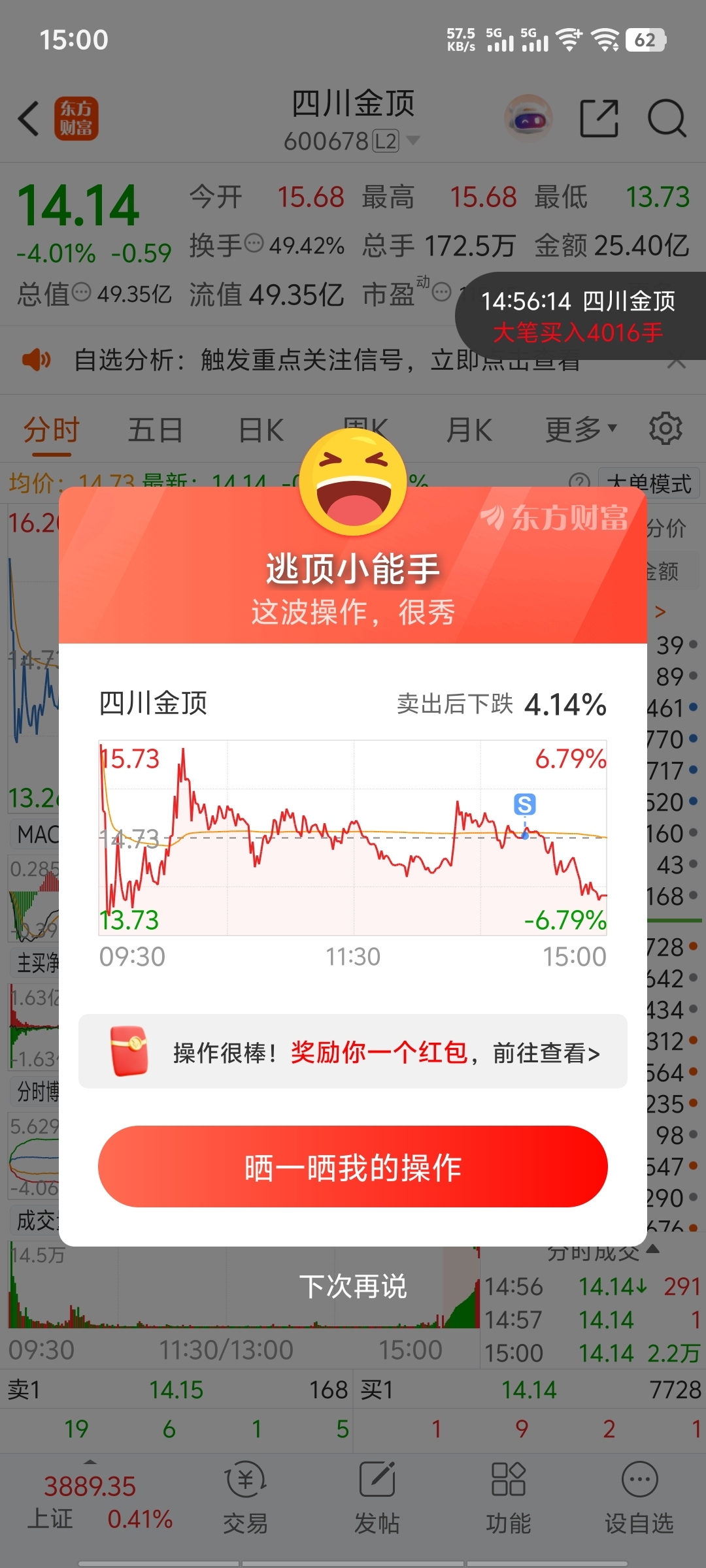 $四川金顶(SH600678)$ 感谢金顶本月让我赚最多盈利,下次再见,大家好运