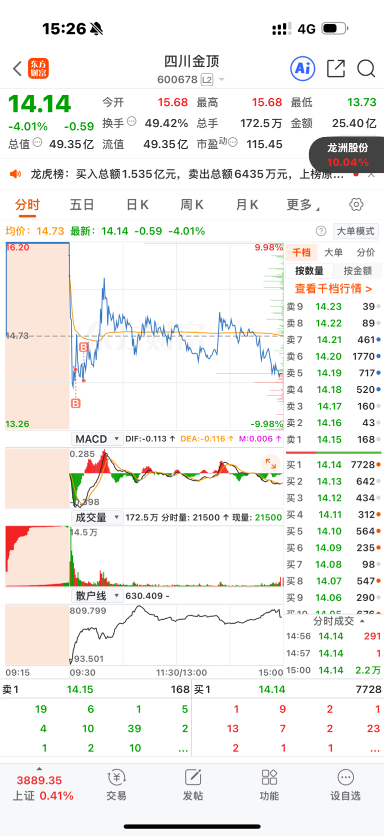 $四川金顶(SH600678)$ 周一清了,害得我没去发展,想吃你15个点,反而少吃6个点!