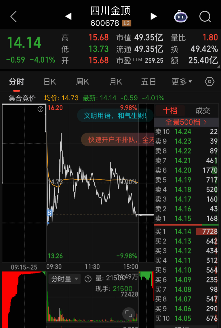 $四川金顶(SH600678)$ 开盘犹豫了,看安妮去了,亏死