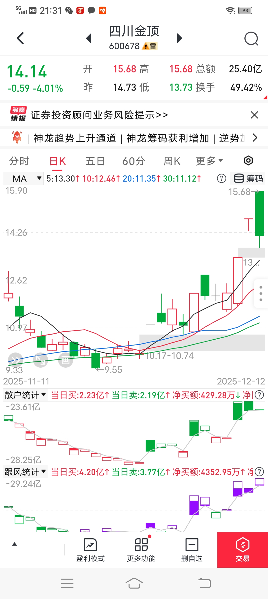 $四川金顶(SH600678)$ 经传多赢手机版数据 123元,但是主卖要当心,大单抛货有依据,别的大单跟谁咋抛货的,要知道。别人啥样你得知道。最近不是突破就是继续斗,步伐不一致,被对接散户领涨,步伐不一样,有些难涨。