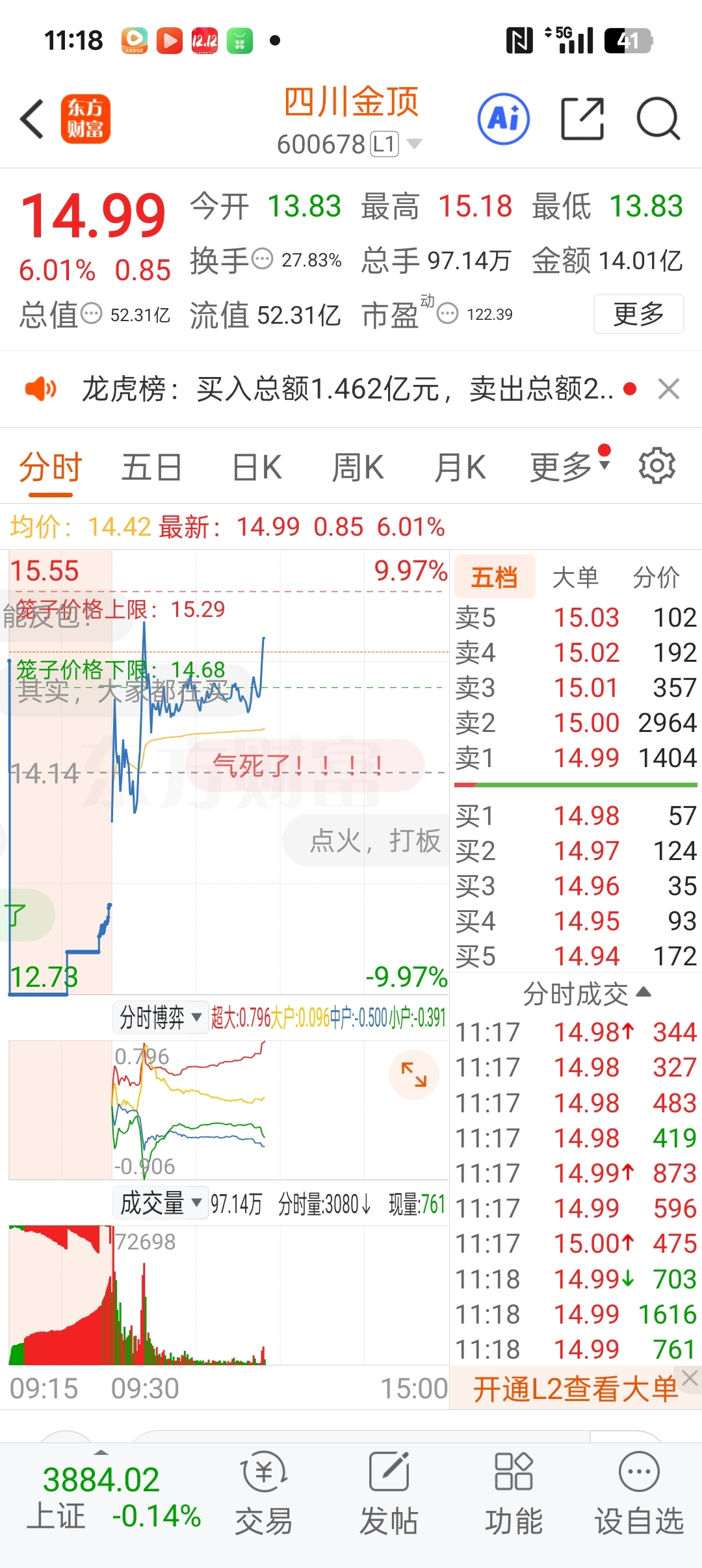 $四川金顶(SH600678)$ 周五下午跳水,这会回本了