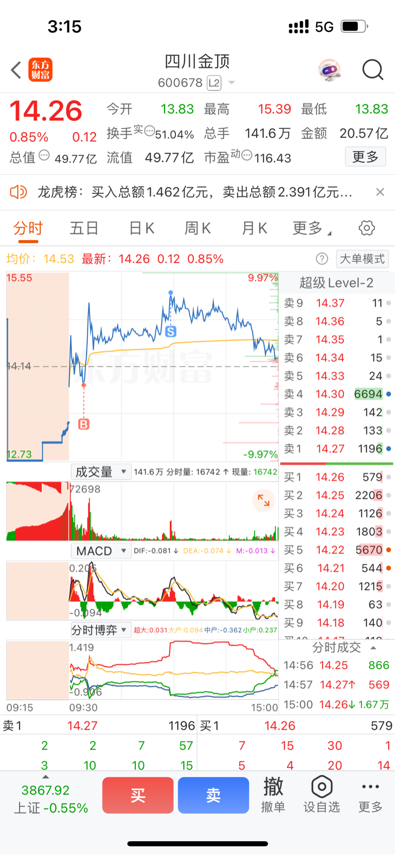 $四川金顶(SH600678)$ 终于卖到最高点了