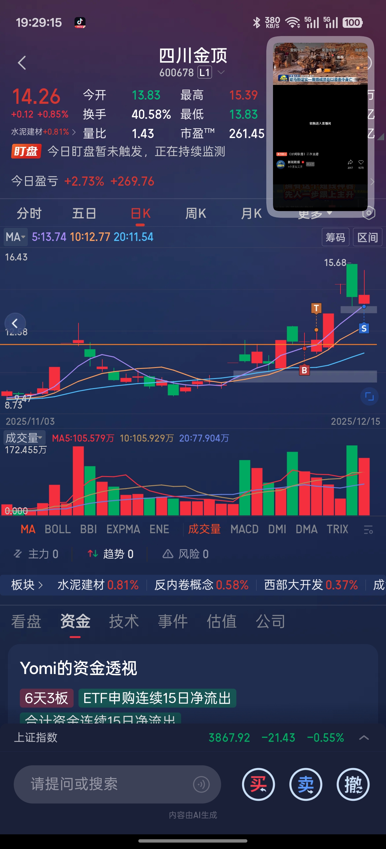 $四川金顶(SH600678)$ 感谢主力,先撤了,我会回来接盘的