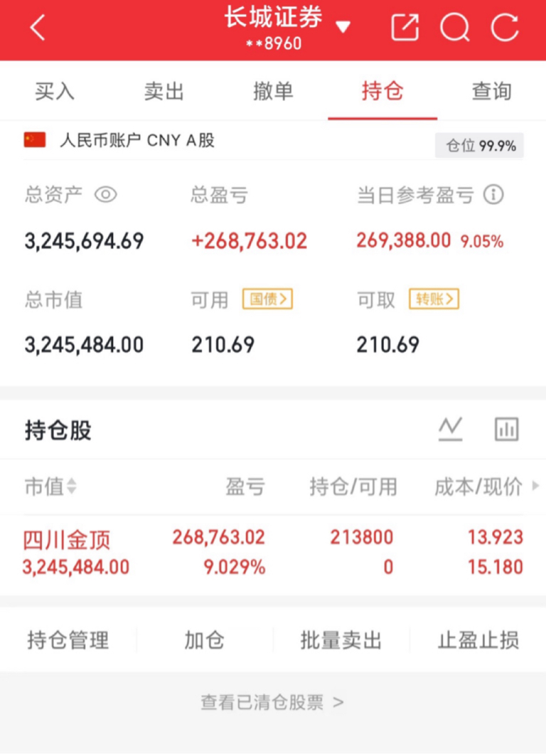 目前持仓:四川金顶