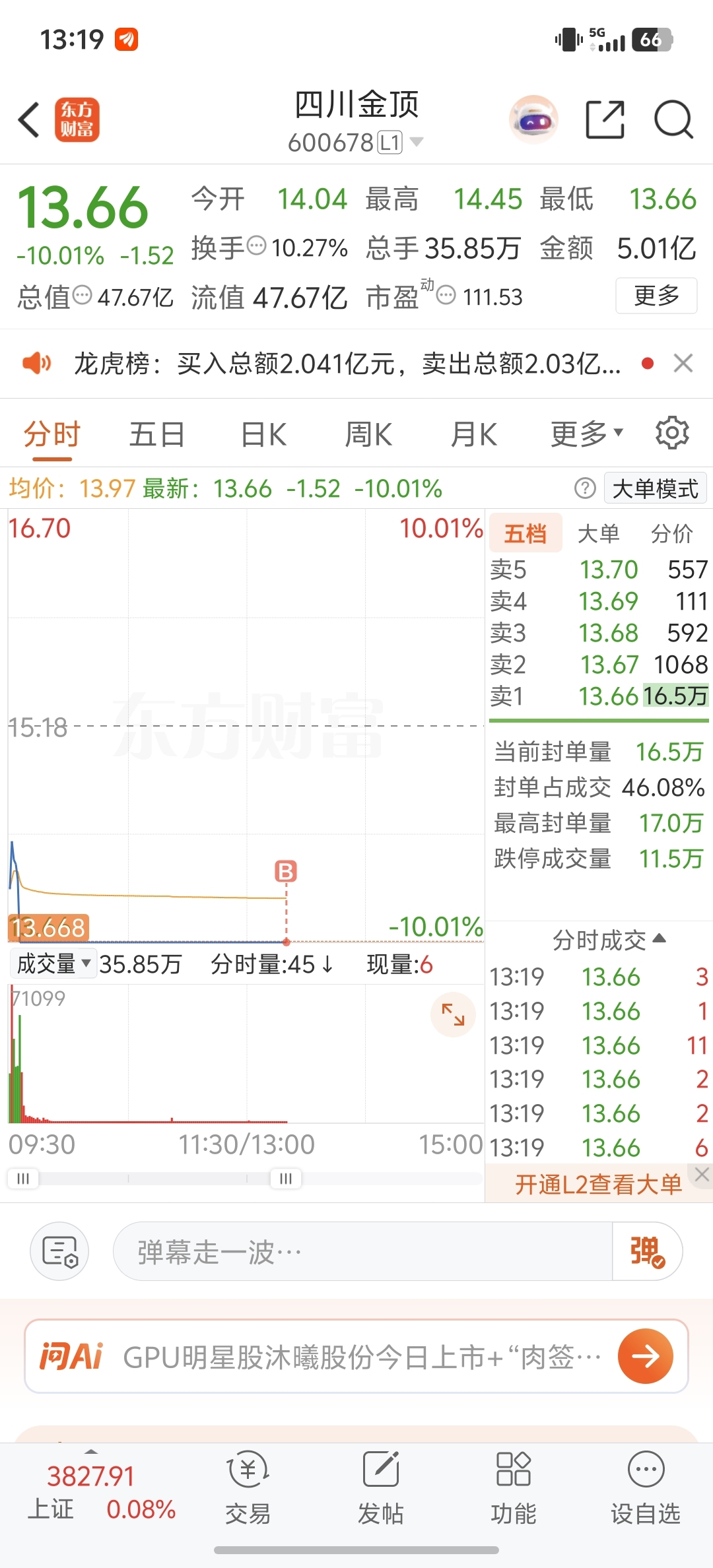 $四川金顶(SH600678)$ 吓唬谁加仓