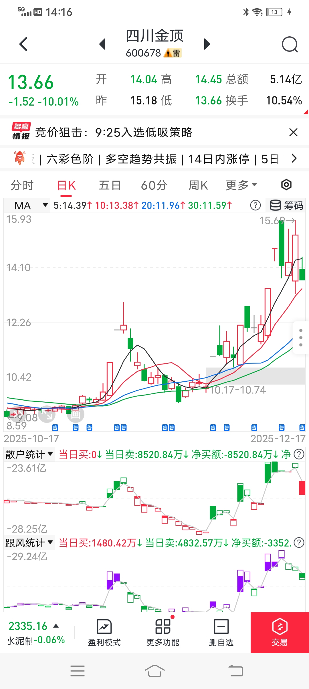 $四川金顶(SH600678)$ 都跟你说了,不叫你低位竞价,你非得卖。竞价接货的,你低位接货再?明知道人家大单在跟买美国量化,还低位接货?小单也不会亏着卖货,本来都不能加仓了啊。跟买,当然是跟卖,你竞价卖货再?傻缺货