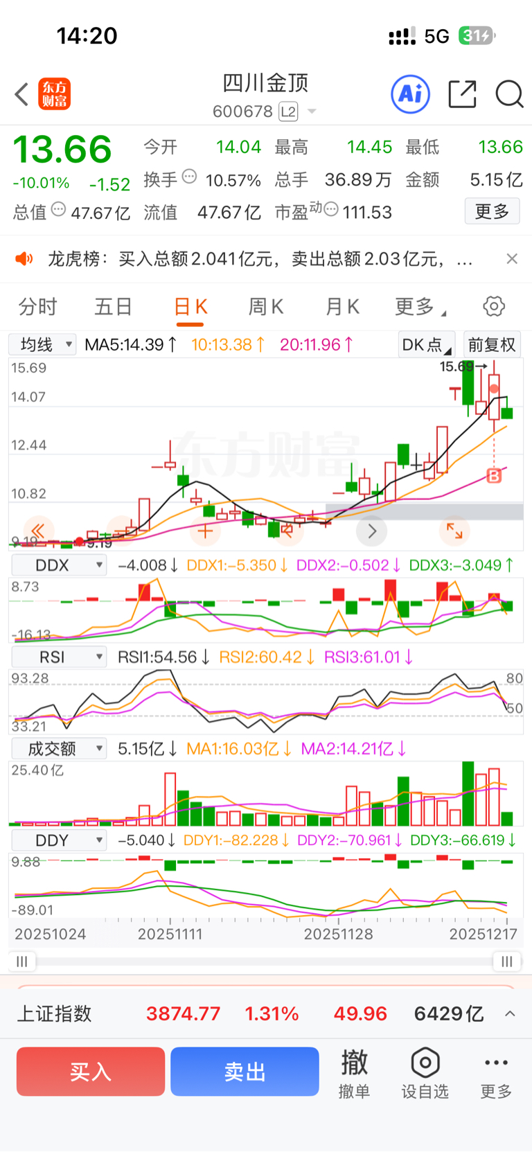 $四川金顶(SH600678)$ 看他每次调整都没跌停 。昨天一买今天直接跌停。真TM的牛逼我