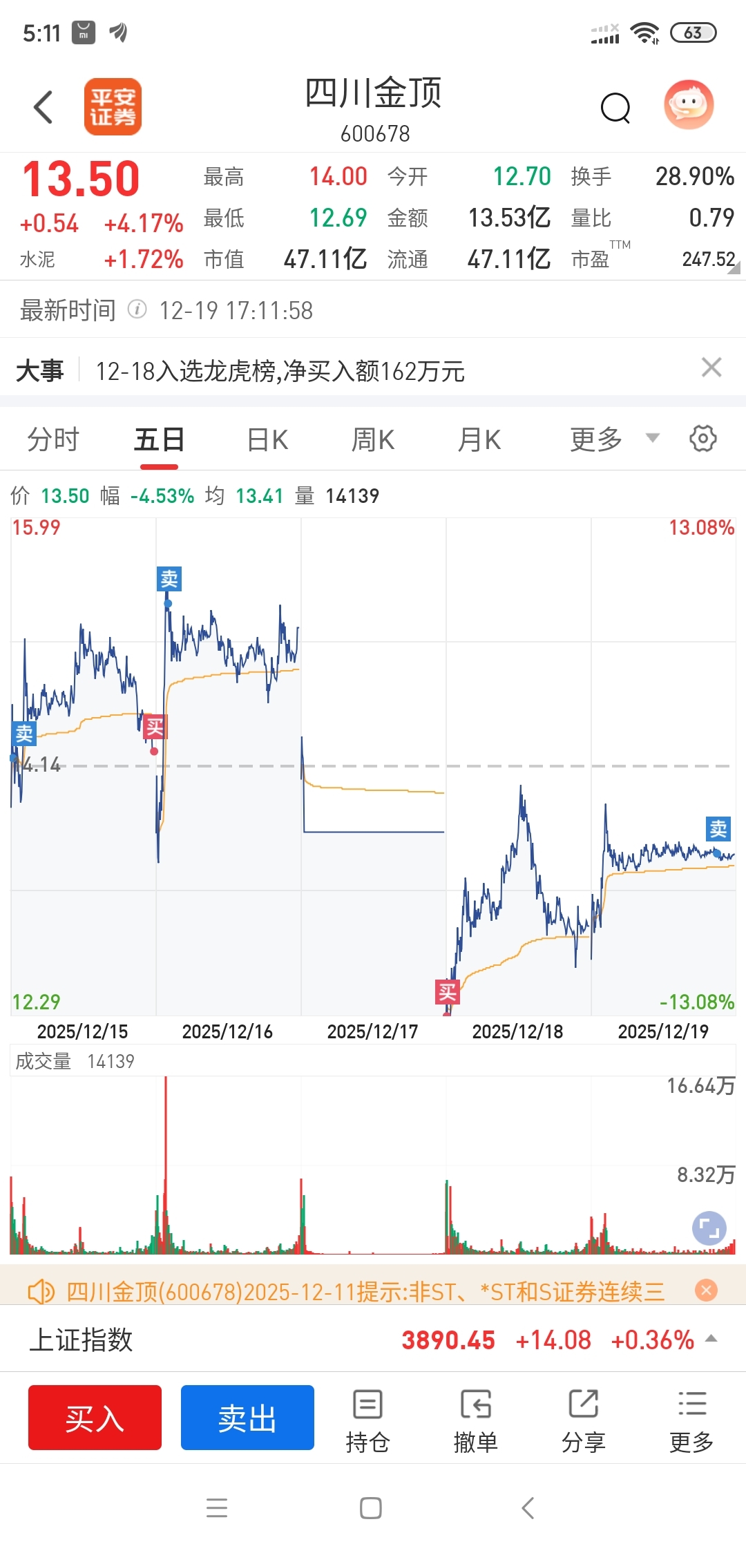 $四川金顶(SH600678)$ 熬不住跑了