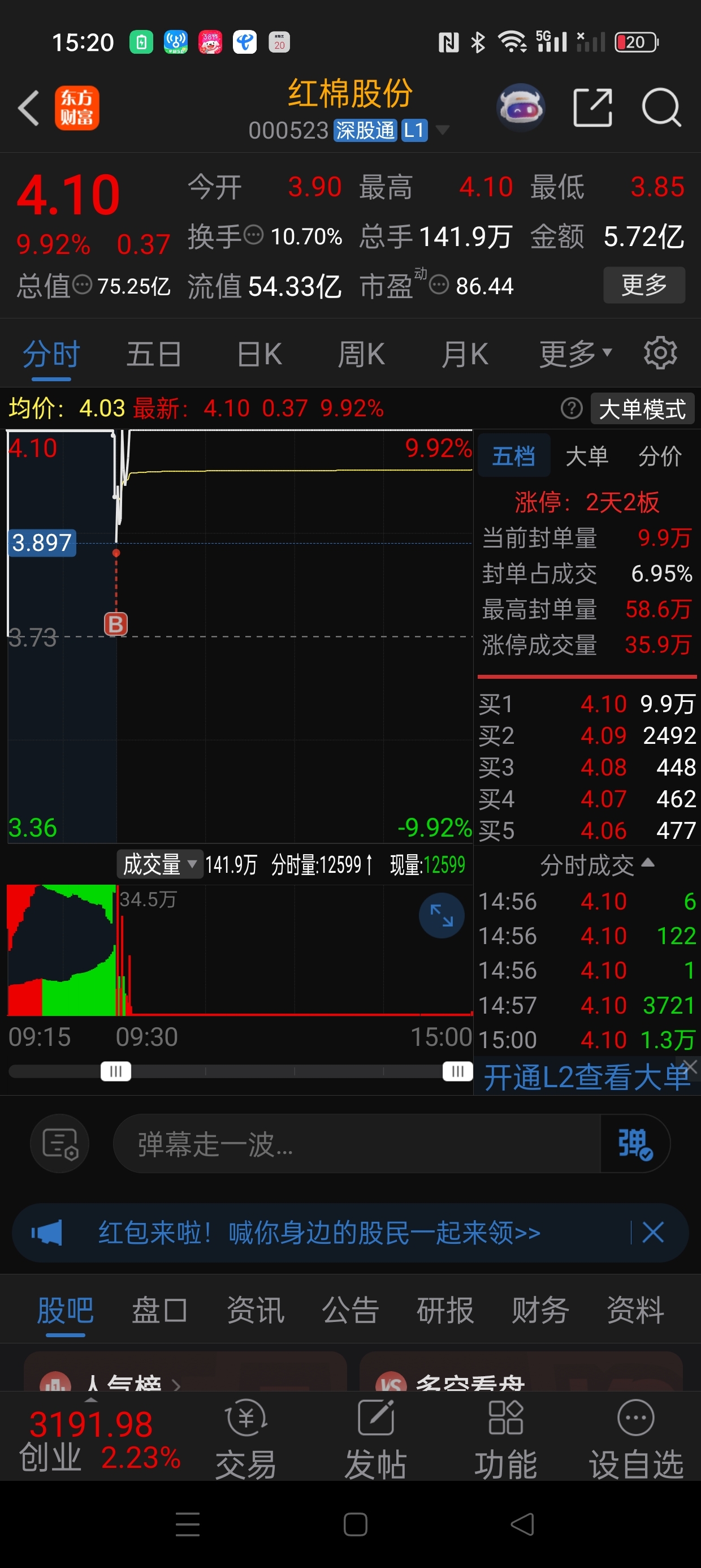 这个票,拿了三天,赚个涨停板算了,早上进了红棉股份,后市可期