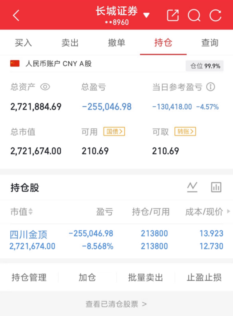 目前持仓:四川金顶