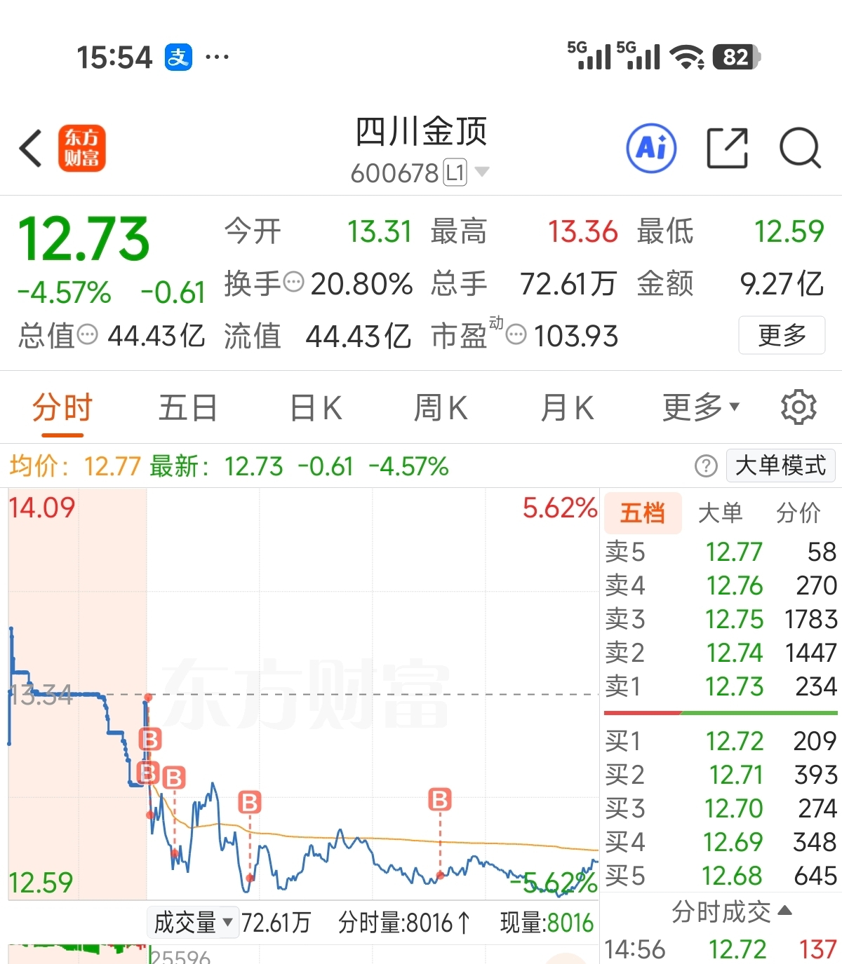$四川金顶(SH600678)$ 我不怕跌,我就是要干