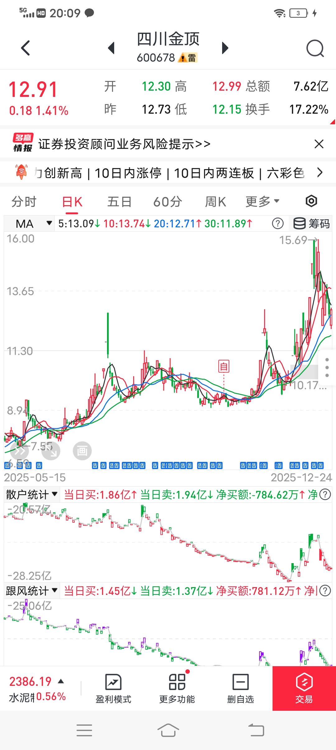 $四川金顶(SH600678)$ 经传多赢手机版数据123元年费。根据量化模型,被对接散户一买容易往下走,冒险策略,不在盘中买。