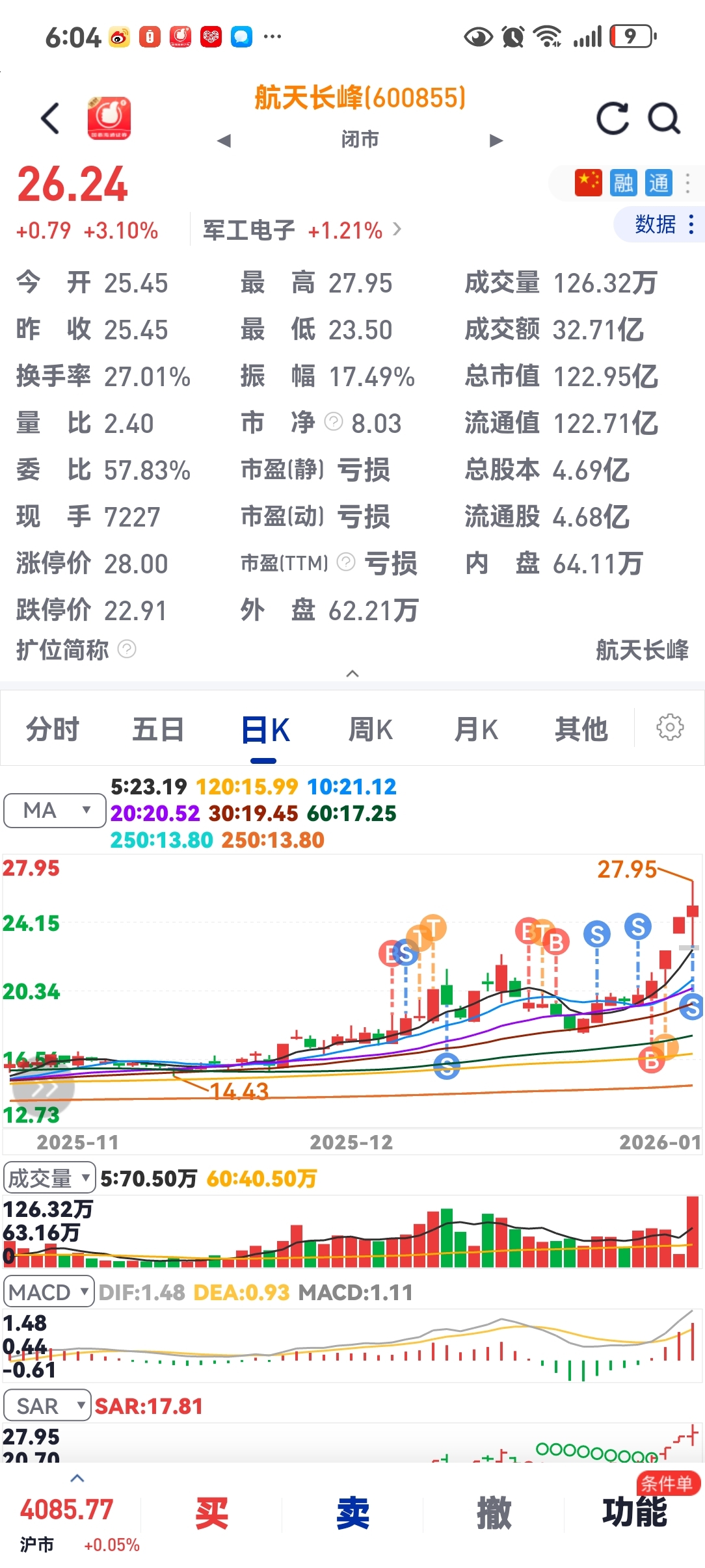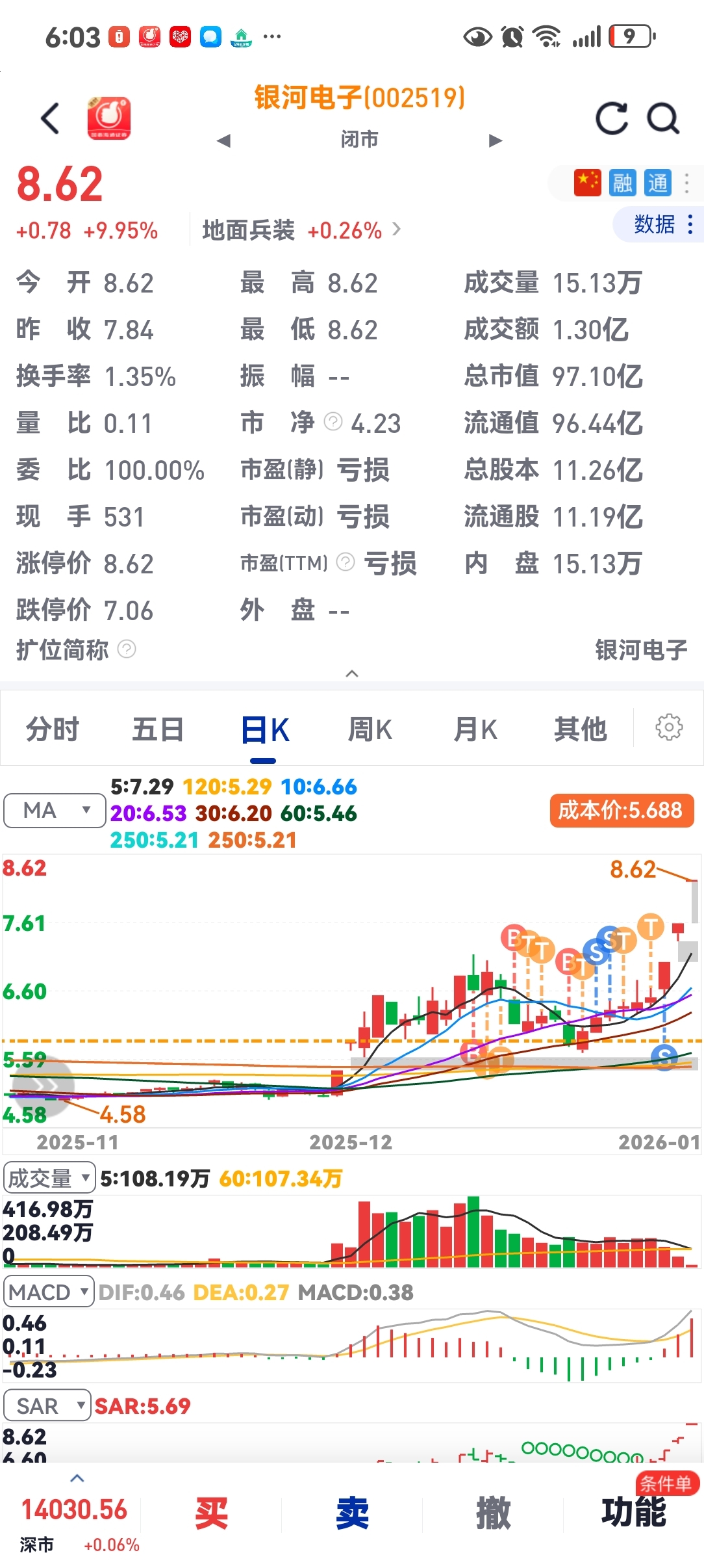 明天不板,后来就可能板,龙回头走势。macd金叉,买错也要买。看看银河电子,航天
