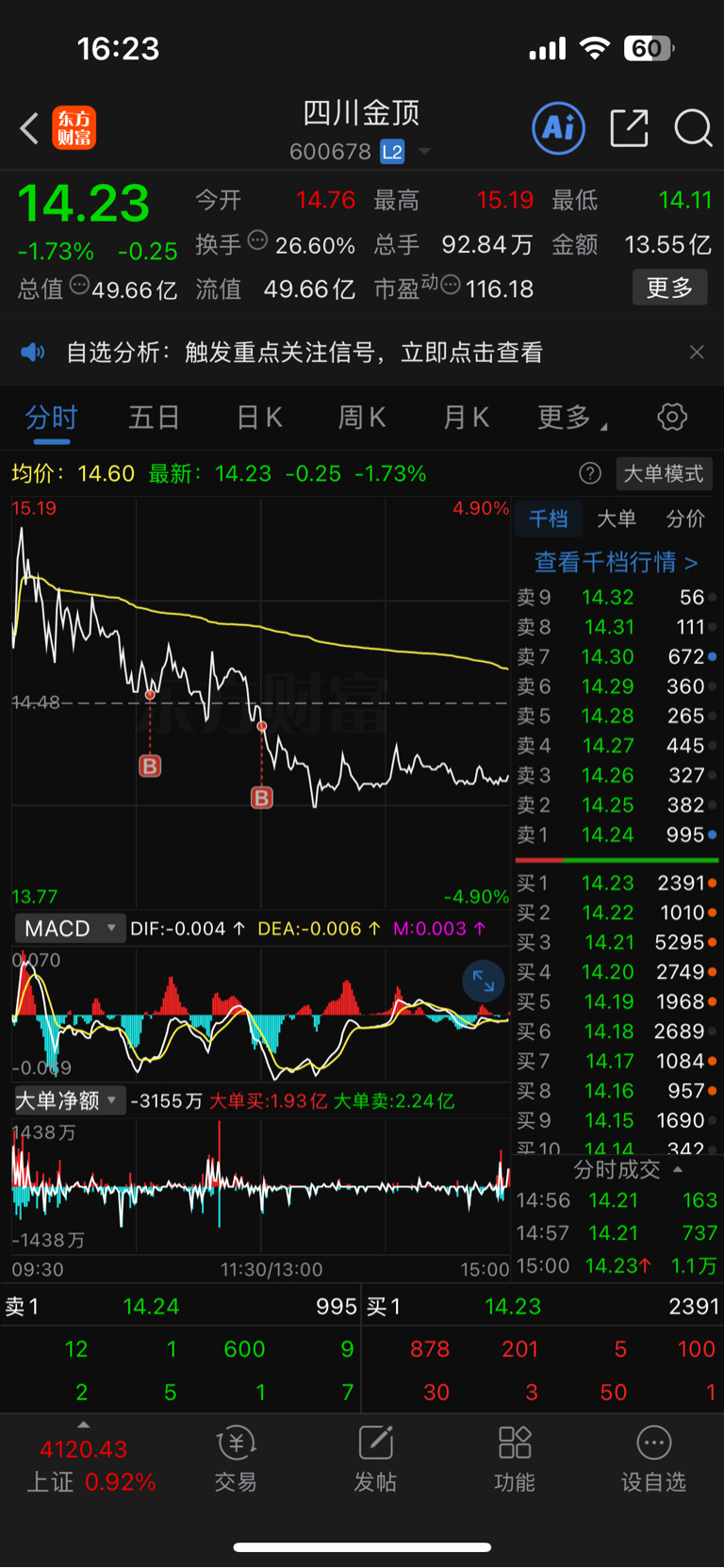 $四川金顶(SH600678)$ 每一次的低位都以为是底,结果你是无底洞啊啊啊啊啊