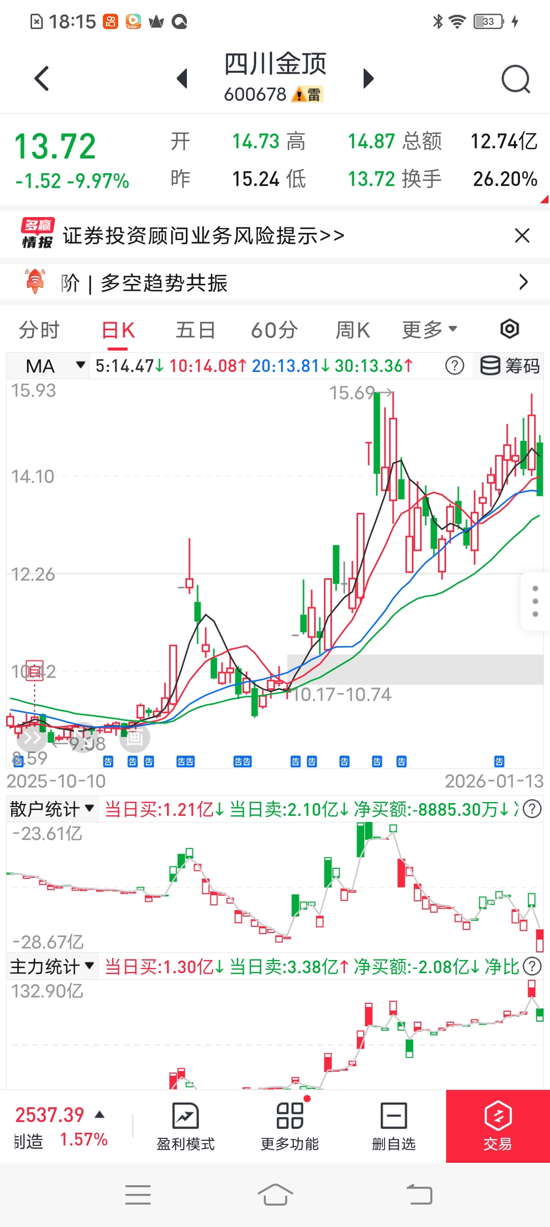 $四川金顶(SH600678)$