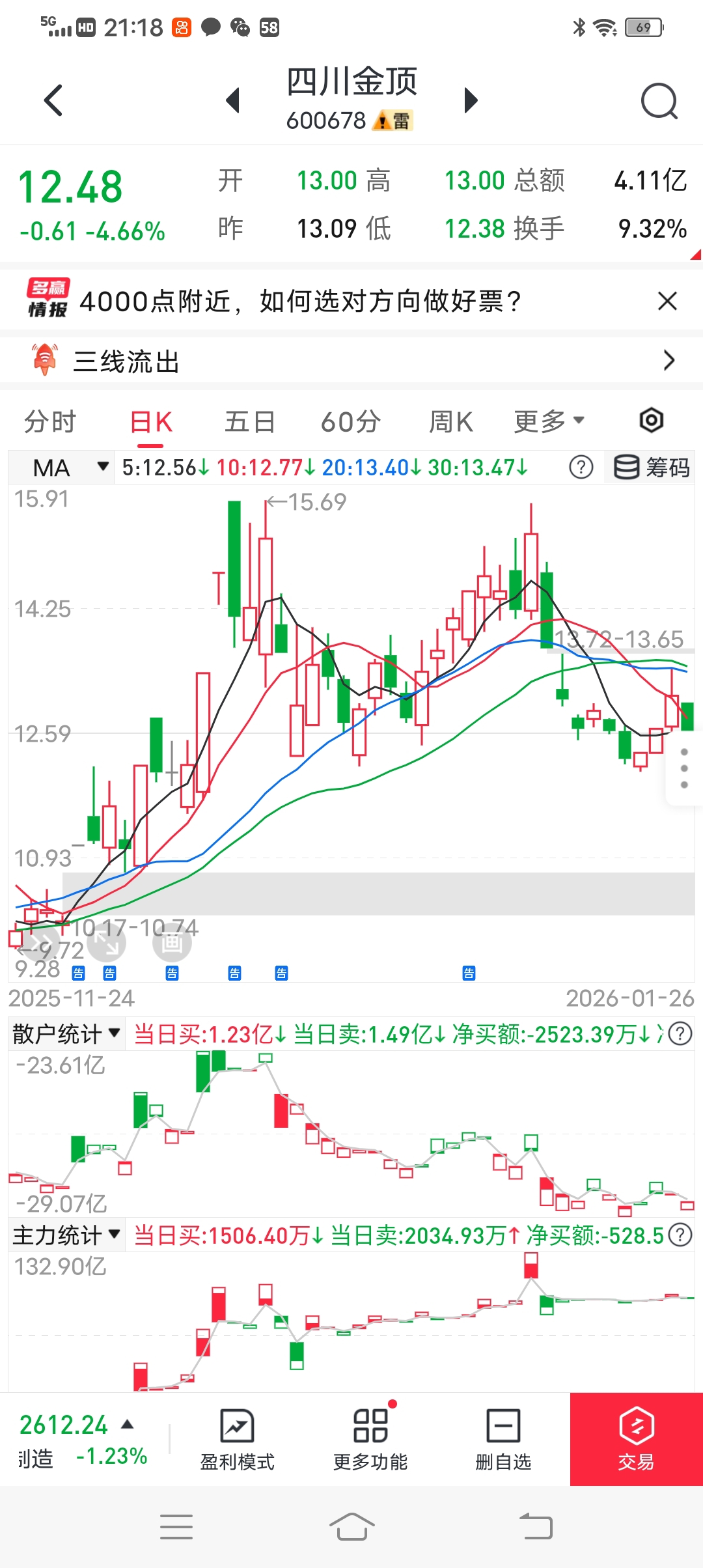 $四川金顶(SH600678)$ 有中单量化跟卖大单,卖下去了吧。下次被对接散户第二天直接给你扣下去。你不用卖下去啊?跟谁买的啊,大单