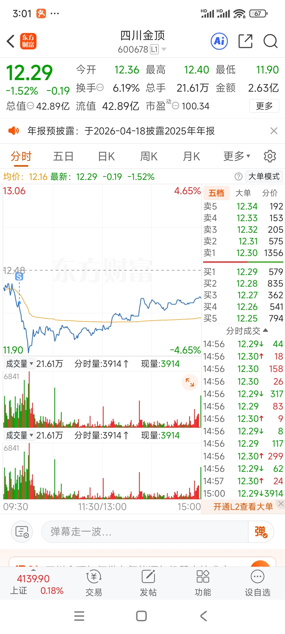$四川金顶(SH600678)$ 我走了,亏了18个点。