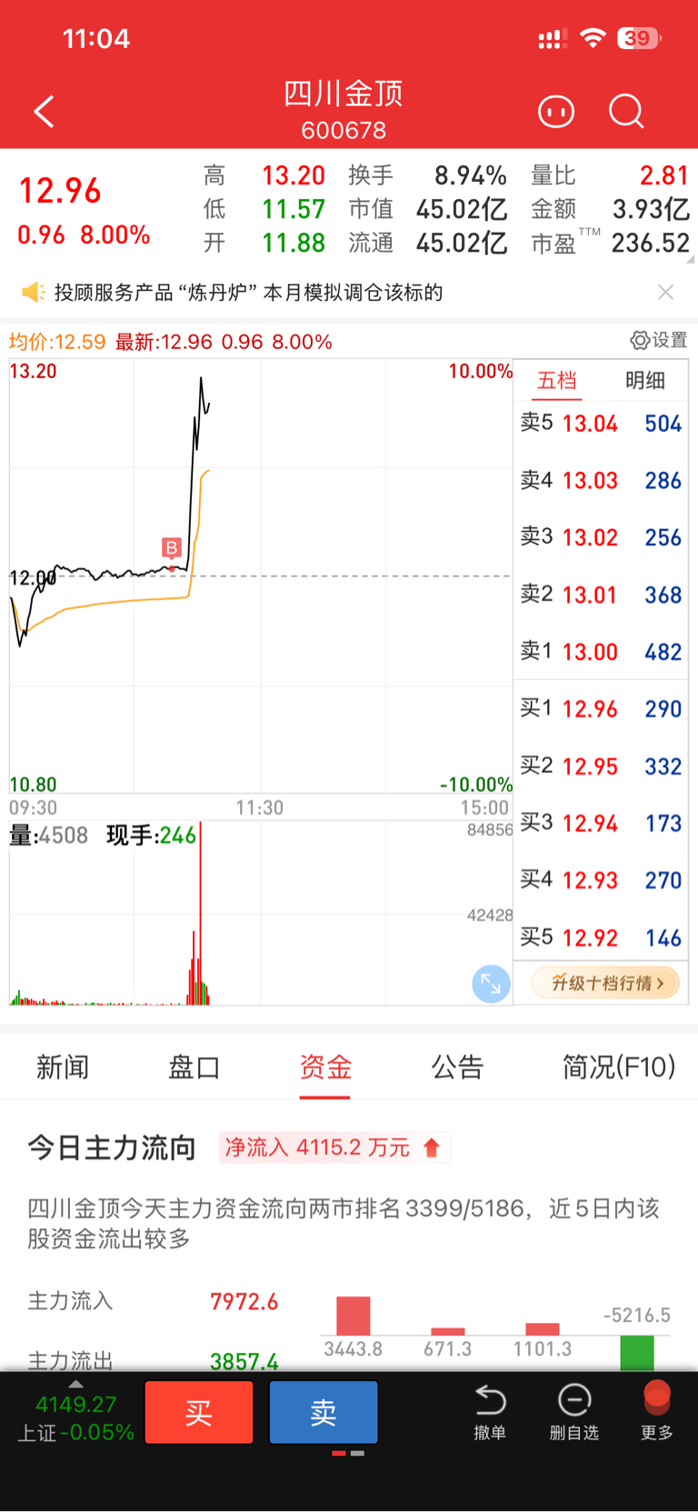 $四川金顶(SH600678)$