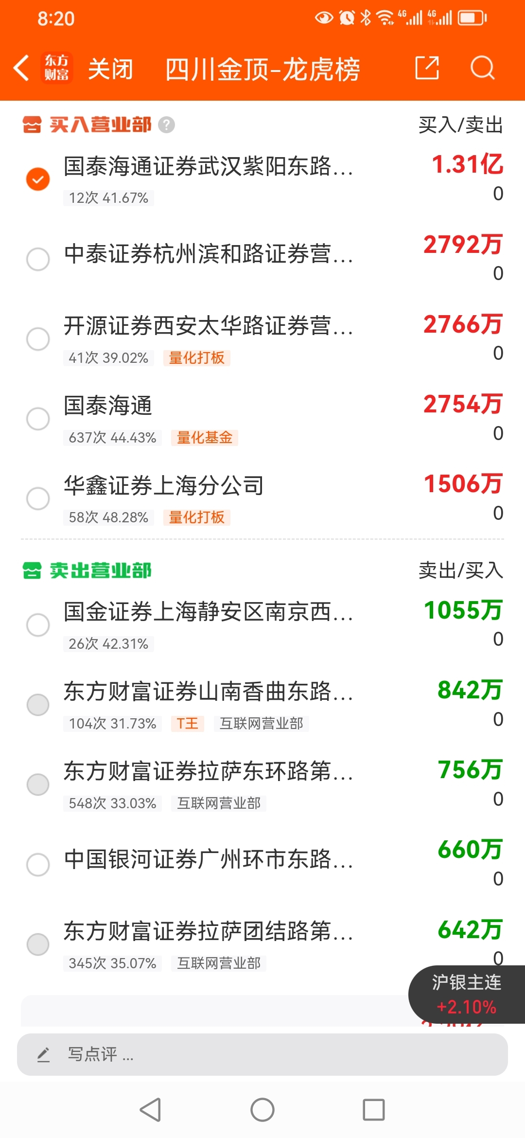 2月2日,炒股冠军方军老师股票,龙虎榜买进1亿。