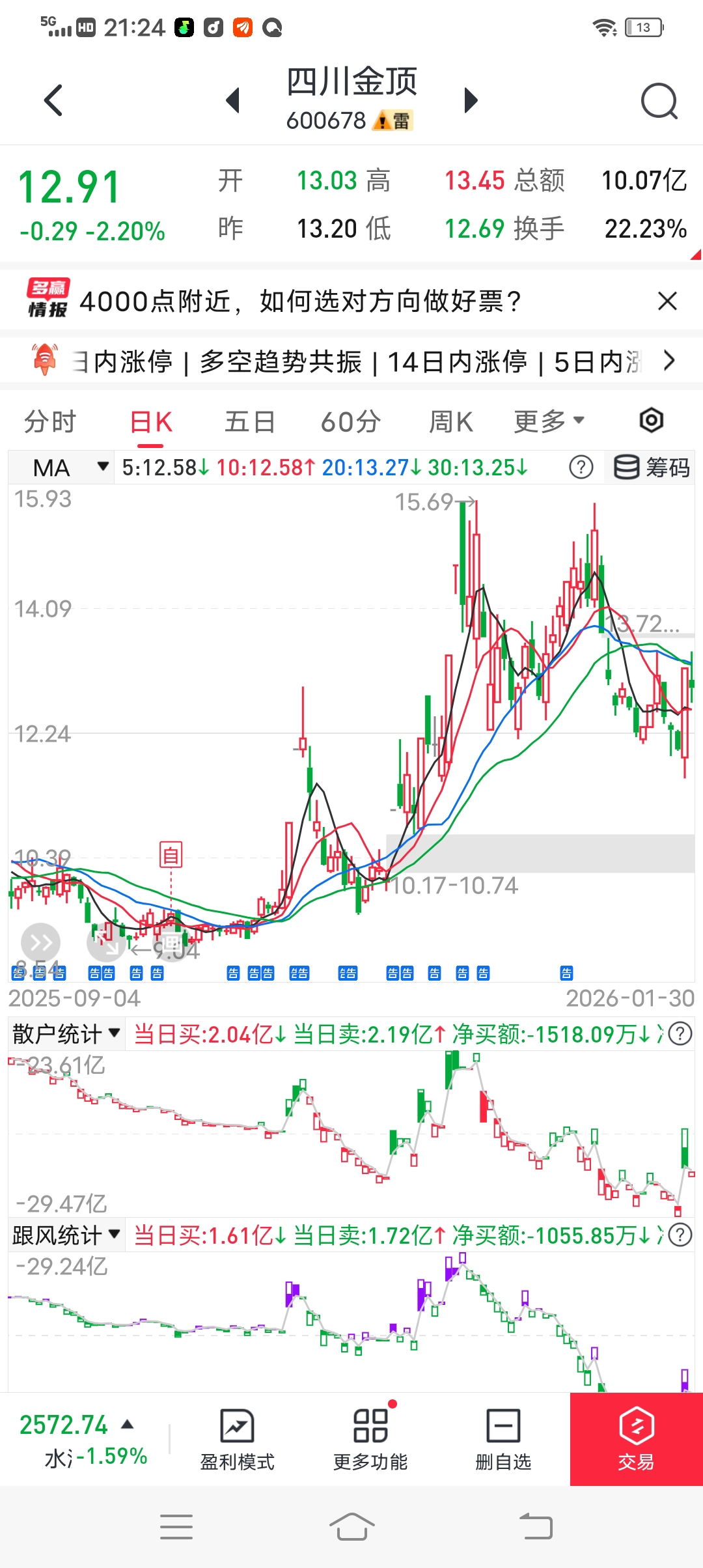 $四川金顶(SH600678)$ 经传多赢手机版短线王数据123元年费。这个软件只有数据,看不见机构名称啊??被对接散户这个股票最少有10个被对接散户啊?主力类,不是只有我一个啊???散户T+0啊,主力大单类???对接的是散户啊?能持续碰到货啊?主力大单类???欧美量化系统内人员名单啊?卖给高盛就是高盛控盘量化了。。