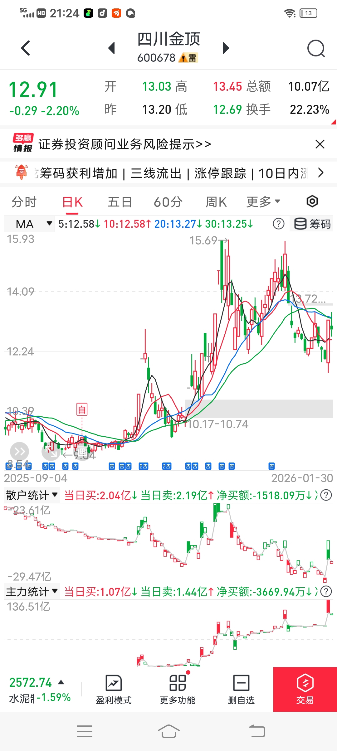 $四川金顶(SH600678)$ 控盘量化程序请看以往评论区,暗庄量化程序老以前评论区。你这老傻傻了,控盘量化高开控盘开盘价,跑路,剩下的不能低价申报,没主见的机构在竞价跟卖。因为是高开,会有人拉升。